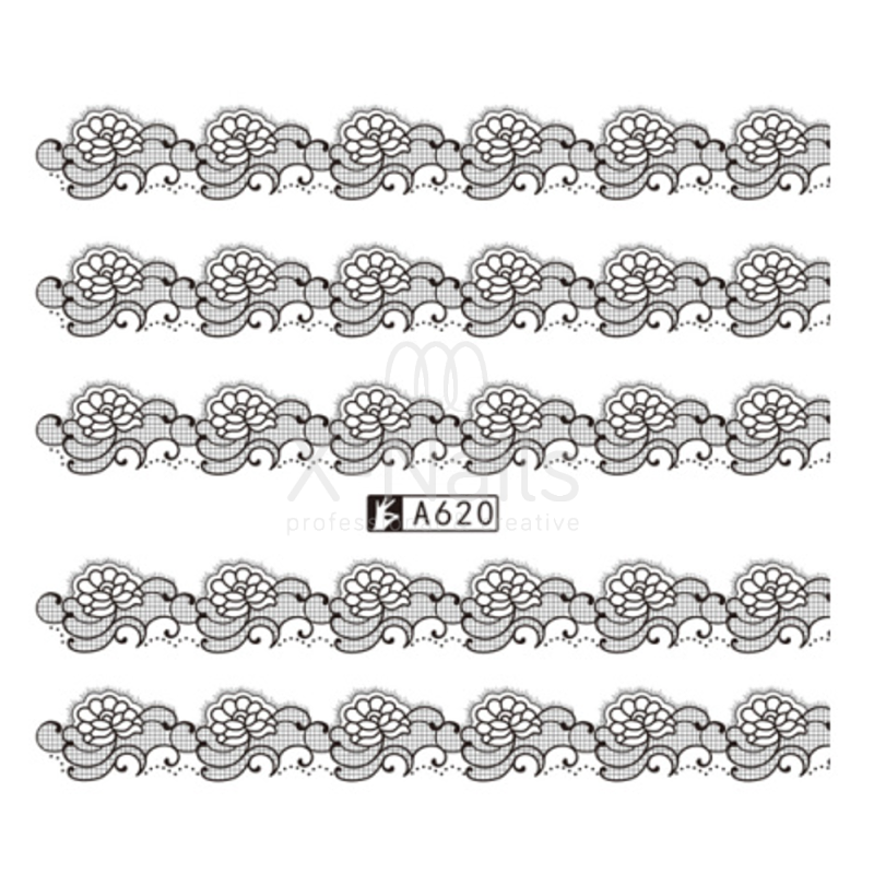 Černé vodolepky na nehty - KRAJKOVÁ BORDURA (A620)