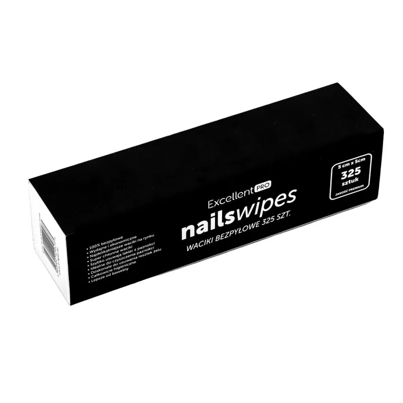 Bezprašné buničinové tamponky na nehty v rozměru 5*5cm. Tyto buničinové polštářky jsou 100% bez vláken, což zaručuje rychlé a efektivní odstranění laku na nehty pomocí kosmetickéhoacetonu nebo pro setření výpotku čističem výpotku Cleanerem (lepkavé disperzní vrstvy) po vytvrzení gel laků a UV gelů. Díky mimořádné měkkosti a absorpčním schopnostem jsou ideální pro dokonalé čištění nehtů i odstranění make-upu. Navíc jsou zcela hygienické a nabízejí vám lepší výkon než tradiční bavlněné tamponky. S balením obsahujícím 325ks máte dostatek polštářků pro mnoho použití. Osvěžte svou gel lak manikúru s jedinečnými Excellent Pro wipes buničinovými polštářky!