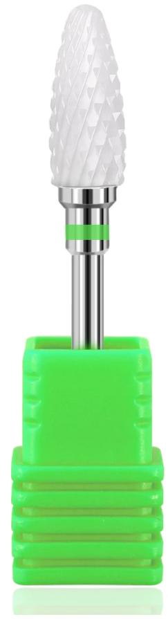Plamínek: Tvar plamínku je speciálně navržen pro odstranění kutikul a odumřelé kůže bez rizika zranění. Její špičatý tvar umožňuje precizní a jemnou práci, je ideální pro přesné a detailní práce v okolí nehtového lůžka.
