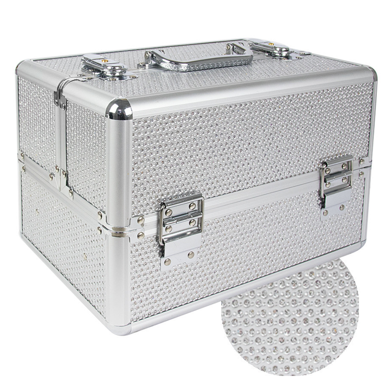 Rozkládací kosmetický kufřík M - SILVER ELEGANCE (elegantní stříbrný kufřík se zirkony)