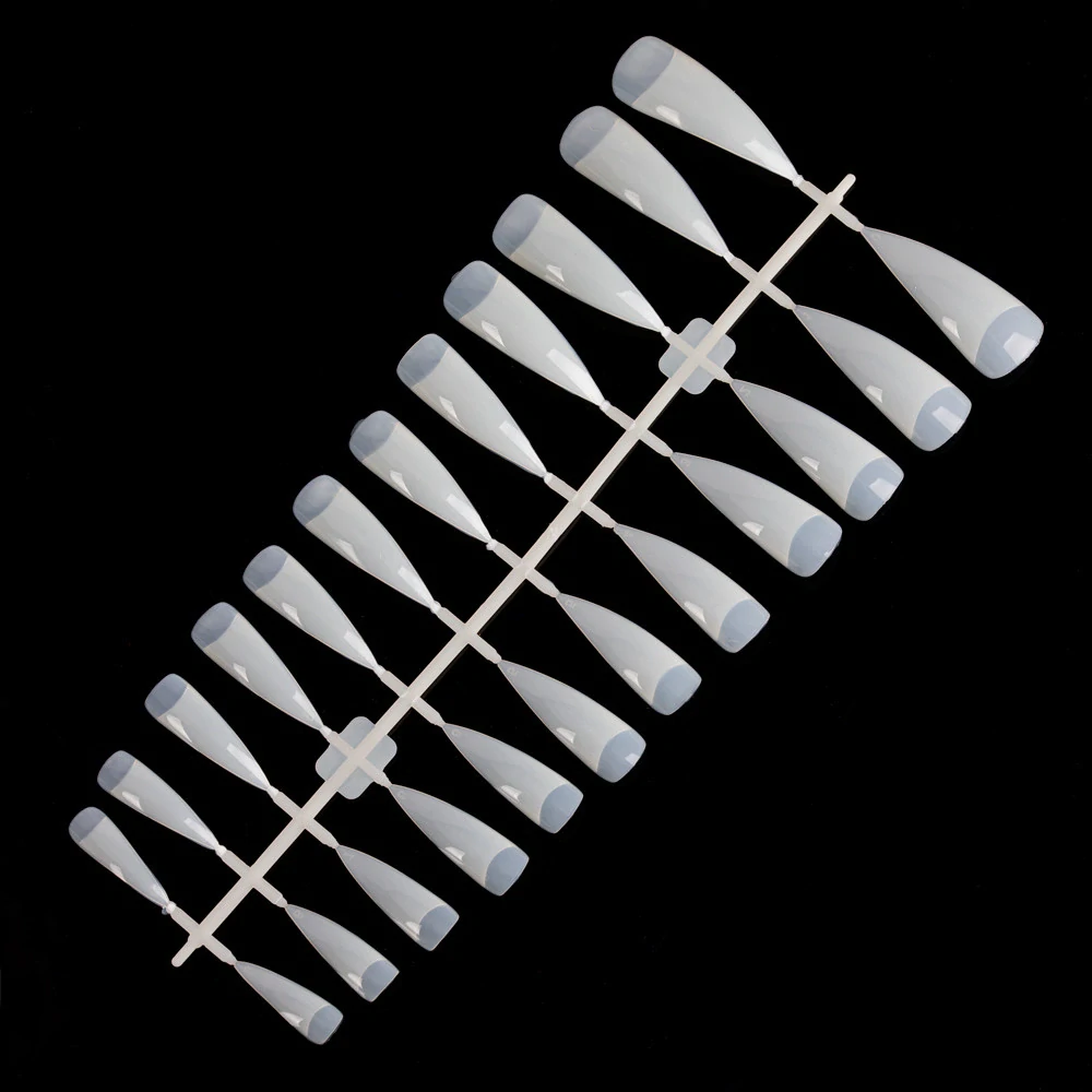 Kvalitní a pevné mléčné tipy na nehty v populárním špičatém tvaru - stiletto, vyrobené z odolného ABS materiálu, vhodné pro profesionální nehtovou modeláž i domácí použití.