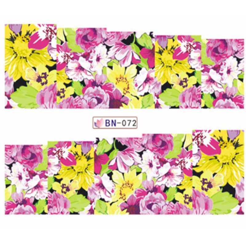 Barevné květinové vodolepky na nehty - KVĚTINY LUX (BN072)