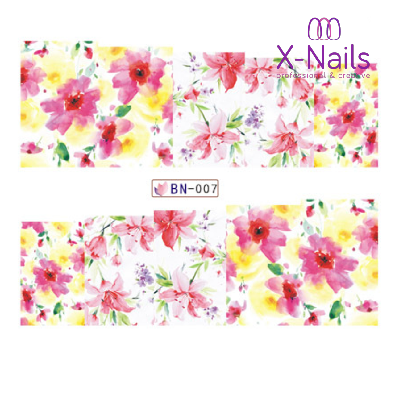 Barevné květinové vodolepky na nehty - KVĚTINY LUX (BN007)